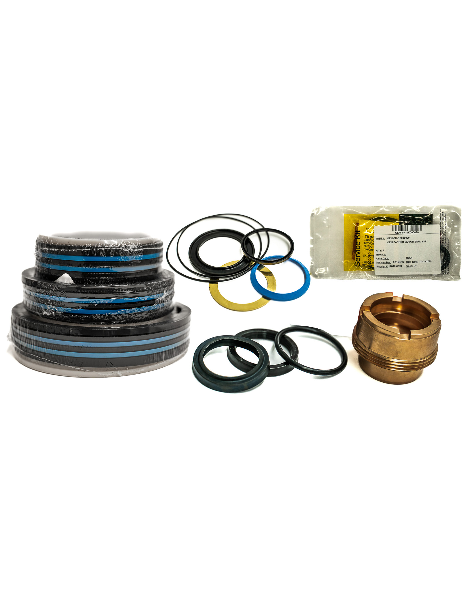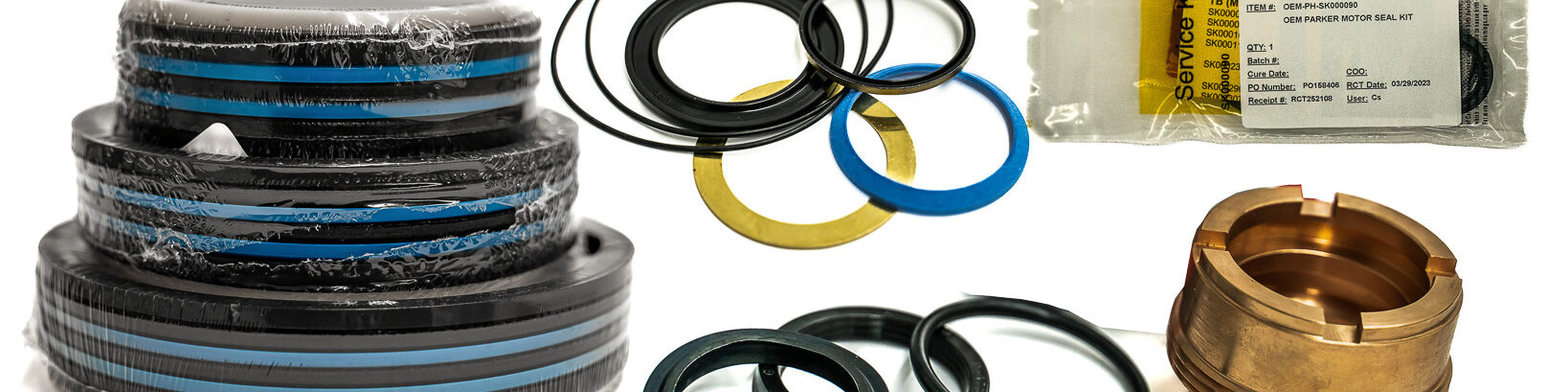 We stock aftermarket seal kits for some of the most popular hydraulic brands, such as Char-Lynn, Parker Hannifin, Miller, Custom Hoist, Hyco and Commercial, just to name a few! Save money and time with our aftermarket kits and parts today! Looking for OEM seal kits? We can help you there too, just provide us with the details and let us find the original equipment manufacturers parts and kits for your application! We carry aftermarket Commercial, Custom Hoist, and hyco KIts. All these kits come with your v-packing and wipers, We Also Stock the gland and piston Bearings for some of these kits. Aftermarket Char-Lynn kits are also available, Just give us the model number/serial number and we can get you going with what you need. Our Aftermarket Parker kits include a brass gland with the wiper and rod seal, just give us the Parker number and we got you covered from there. This also goes for our aftermarket Parker Piston seal kits which include 2 u-seals and hytrel back up rings.