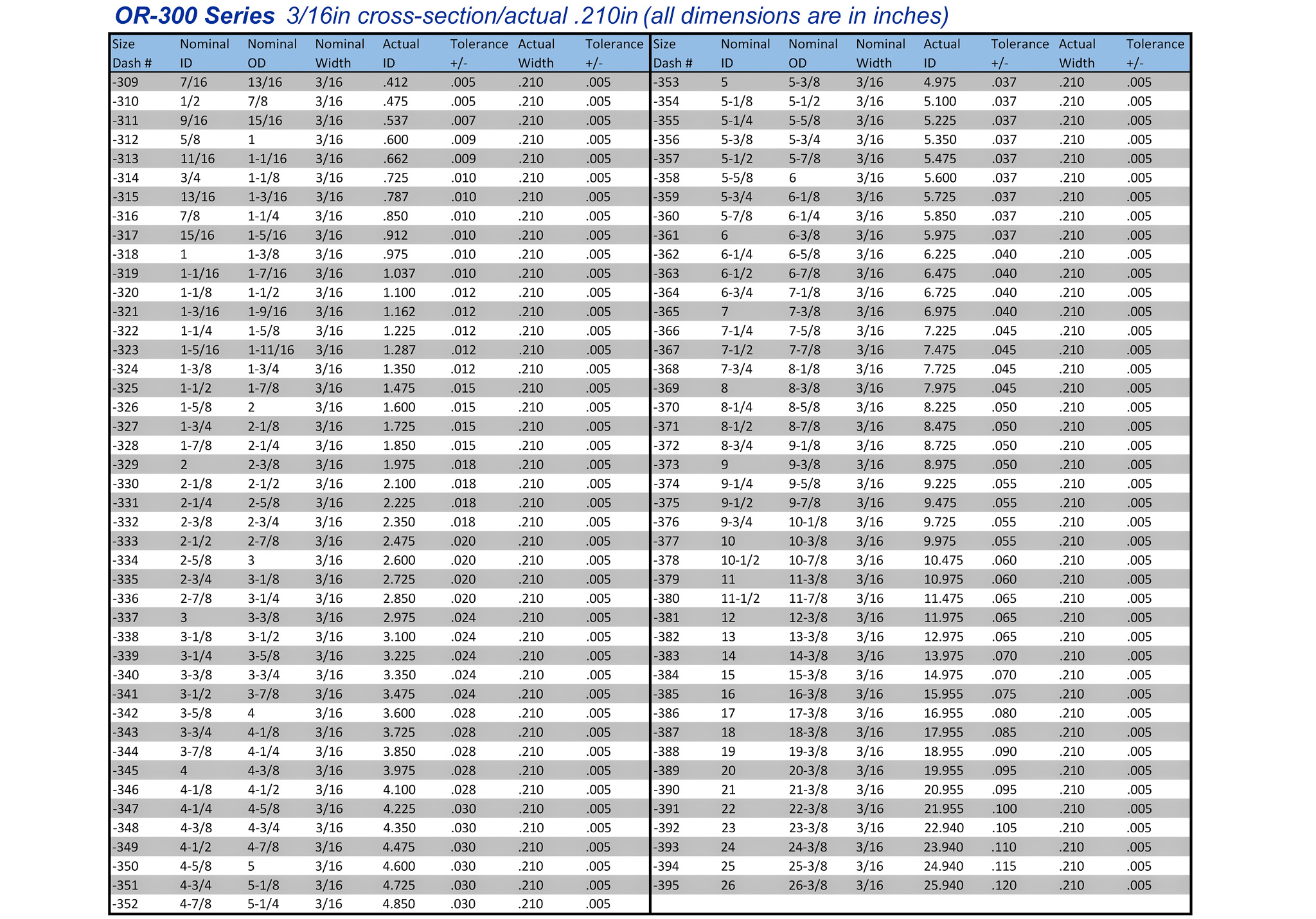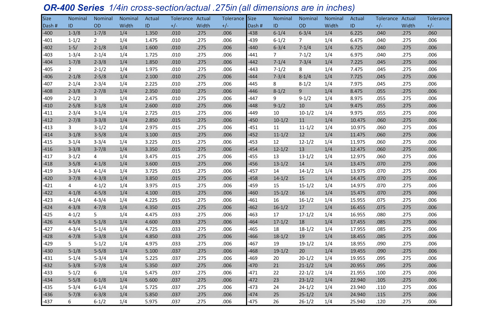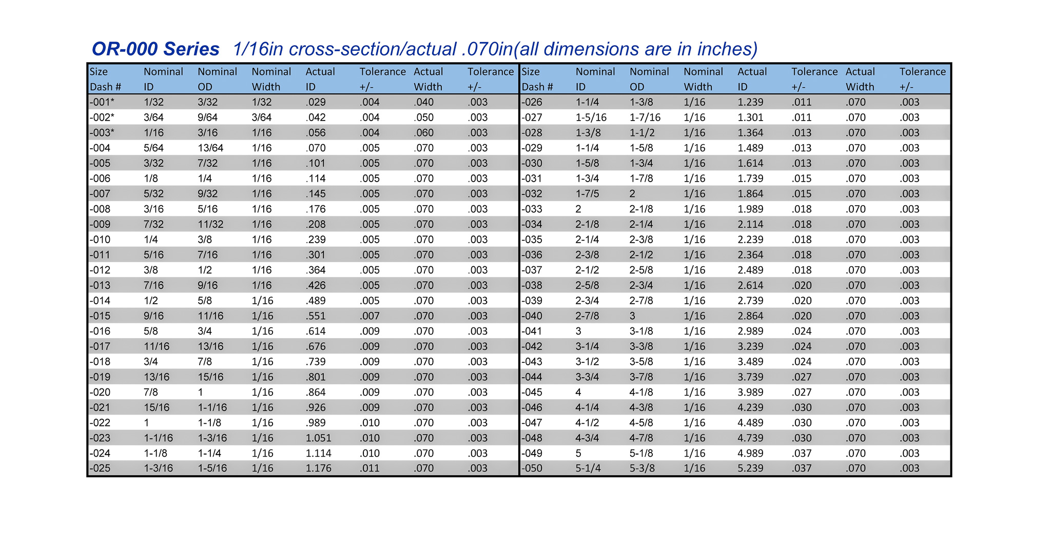 Listed below is our sizing chart for each series, each o-ring has an actual size that we also list below.